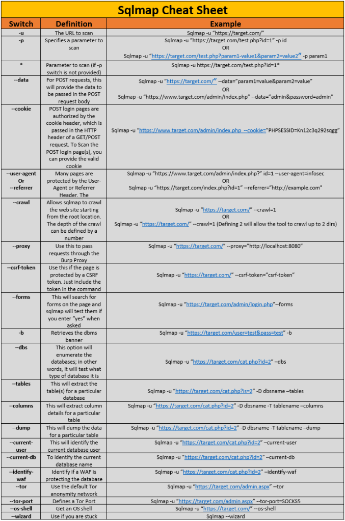 Set proxy turn on intercept tab in burp suite and come. Information security cheat sheet this is a recollection of links and resources i have found. Sql injection is a web security vulnerability that allows an attacker to interfere with the queries that an application makes to . Sqlmap is one of the best sql injection tools. In this section, we'll explain what sql injection is, describe some common examples, explain how to.